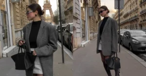 I’m all about this grey-on-grey look—it’s soft yet so work-chic! Great for a cozy Monday in the office. Pair with white sneakers and a tote for an easy, stylish vibe.