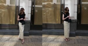 Okay, this look is giving me major main character energy. You know those days when you are just walking down the street with your iced coffee, listening to your favorite playlist, and you just feel totally unstoppable? This is exactly the outfit for that mood. Pairing an oversized blazer with some sleek mules is the ultimate cool-girl uniform. I feel like you just can’t go wrong with this silhouette. It balances out the chunkiness of a big jacket perfectly because it shows off your ankles.