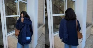 This is just everyday perfection. It’s casual, it’s cool, and it looks so comfortable. I love the way she styled it with relaxed pants. It’s the ultimate “Sunday morning grocery run” fit.